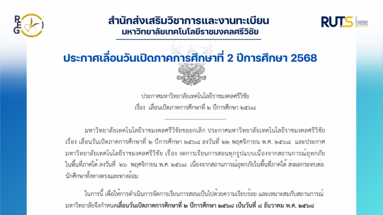 นักศึกษา ประกาศงดการเรียนการสอน เนื่องด้วยการฝึกซ้อมย่อย พิธีพระราชทานปริญญาบัตร ประจำปีการศึกษา 2567กันยายน 2, 2025กันยายน 2, 2025